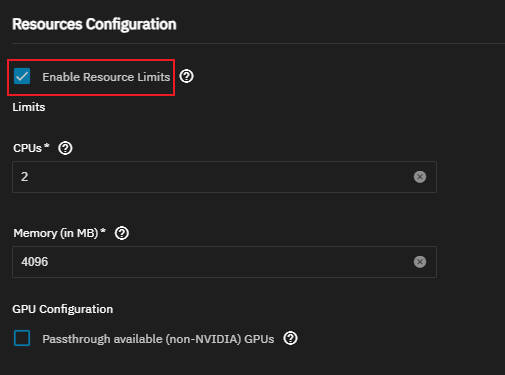 限制应用运行使用的物理机CPU/内存资源,看个人需要进行配置即可。