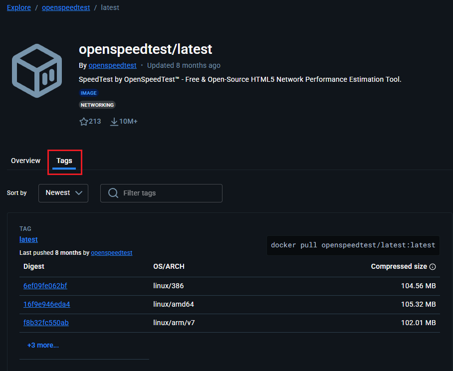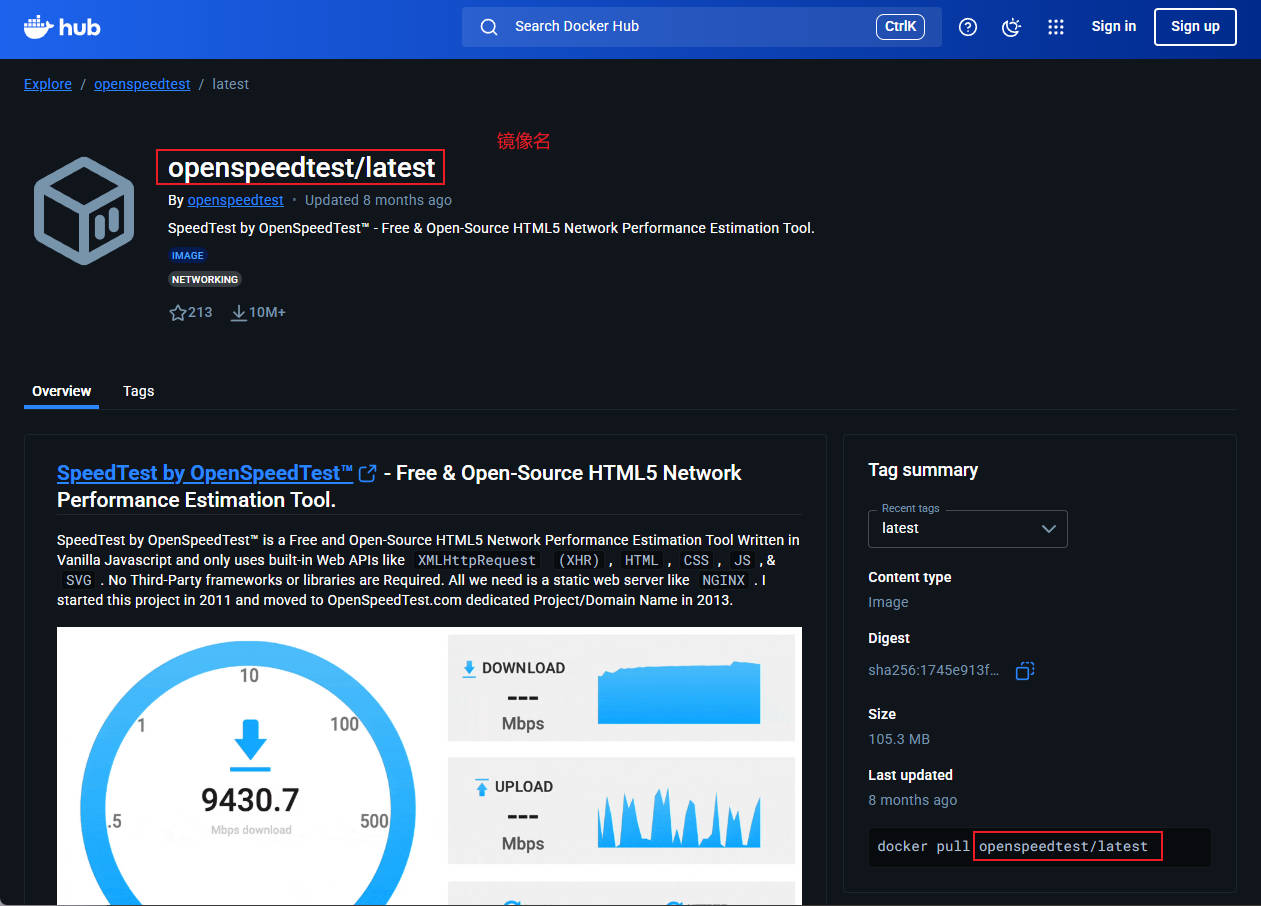 这里以测速工具“Open Speed Test”为例,找到并打开应用的镜像详情页。