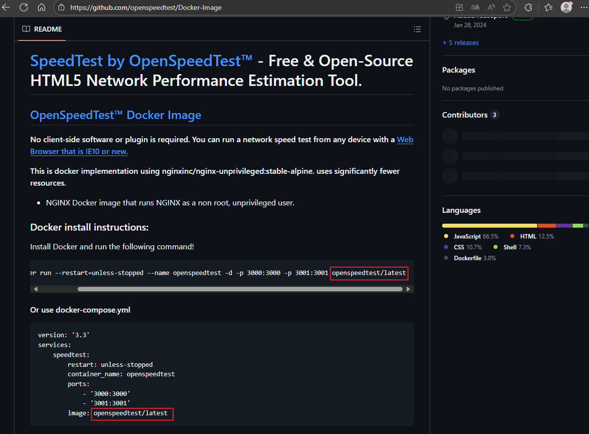docker run openspeedtest/latest:latest # Docker启动最新版的 openspeedtest/latest 镜像